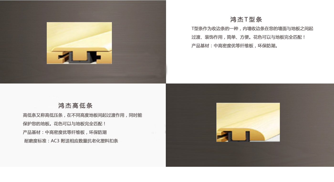 專業(yè)生產(chǎn)各類地板輔料。本廠成立于2008年,經(jīng)過(guò)嚴(yán)格的質(zhì)量控制,已開(kāi)發(fā)出SPC、WPC、層壓板三種不同的壓花材料。每一種材料都有超過(guò)7種不同的過(guò)渡型材,如t型線、減速器、端蓋、四分之一圓、樓梯前鼻、樓梯板、踢腳板等。
